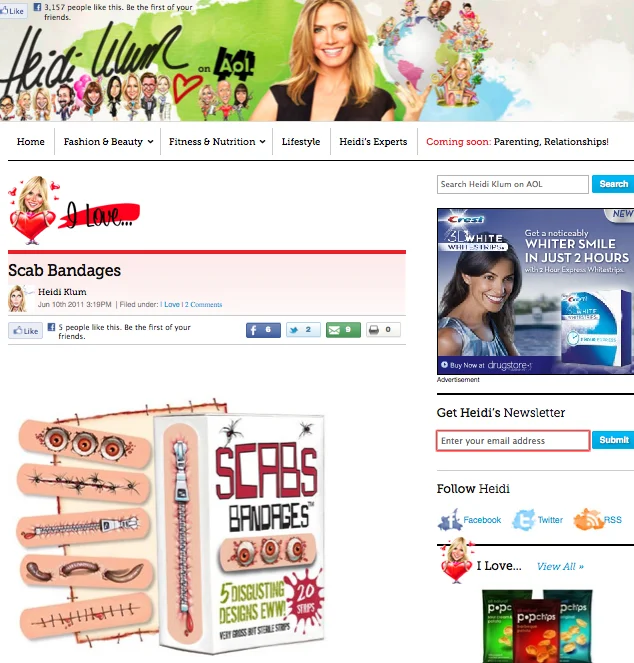 I was tired of seeing happy, smiley bandages everywhere. So we created bandages that were just as gross, if not grosser, than the cuts they were trying to hide. They’re called Scabs Bandages. Fortunately, we didn’t have to spend money on some bloated advertising campaign. Since it was featured on “Boing Boing,” among many other sites, we sold out.